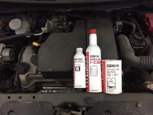 今回はエンジン内部の滑りをよくして燃費も回復のエンジンスムーザーとエンジンの中にたまった汚れを取り除き加速性能を回復してくれるF-ZEROを入れさせていただきました。あとはライト回り、サイドスリップ調整などして陸運局で持込み検査をします。その後内装外装を仕上げて完了です。