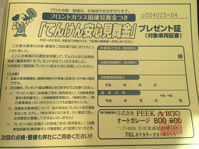 こんなおまけ付きなので12ヵ月点検はBOOBOOでどうぞ!