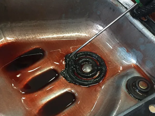 オイルパンとストレーナーを取り外し、洗浄を行っていきます。長く走っていると車はどんどん汚れがたまってしまうので、こういった定期洗浄をするとエンジン音に変化があったり燃費もよくなってきます。