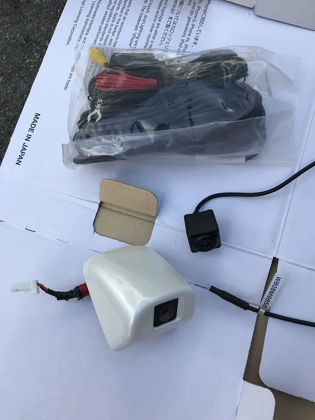 リアゲートからカーナビ本体まで配線を通しまして接続します。次にフィニッシャーにカメラを取り付けます。カメラを取り付ける際、今回はフィニッシャーの加工が必要でしたが上手く収めることができました。