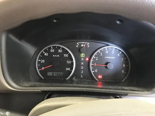 メーターを確認しますとサイドブレーキ解除時にもかかわらず警告灯が点灯しておりました。そこでブレーキフルードの残量確認しましたところ、液面がMIN以下になっております。そこで考えられる原因がブレーキパッドの摩耗です。