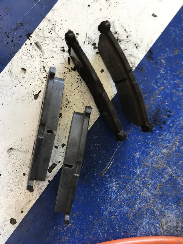 フロントブレーキを分解しましてブレーキパッドを確認しますと残量1MMぐらいでした。